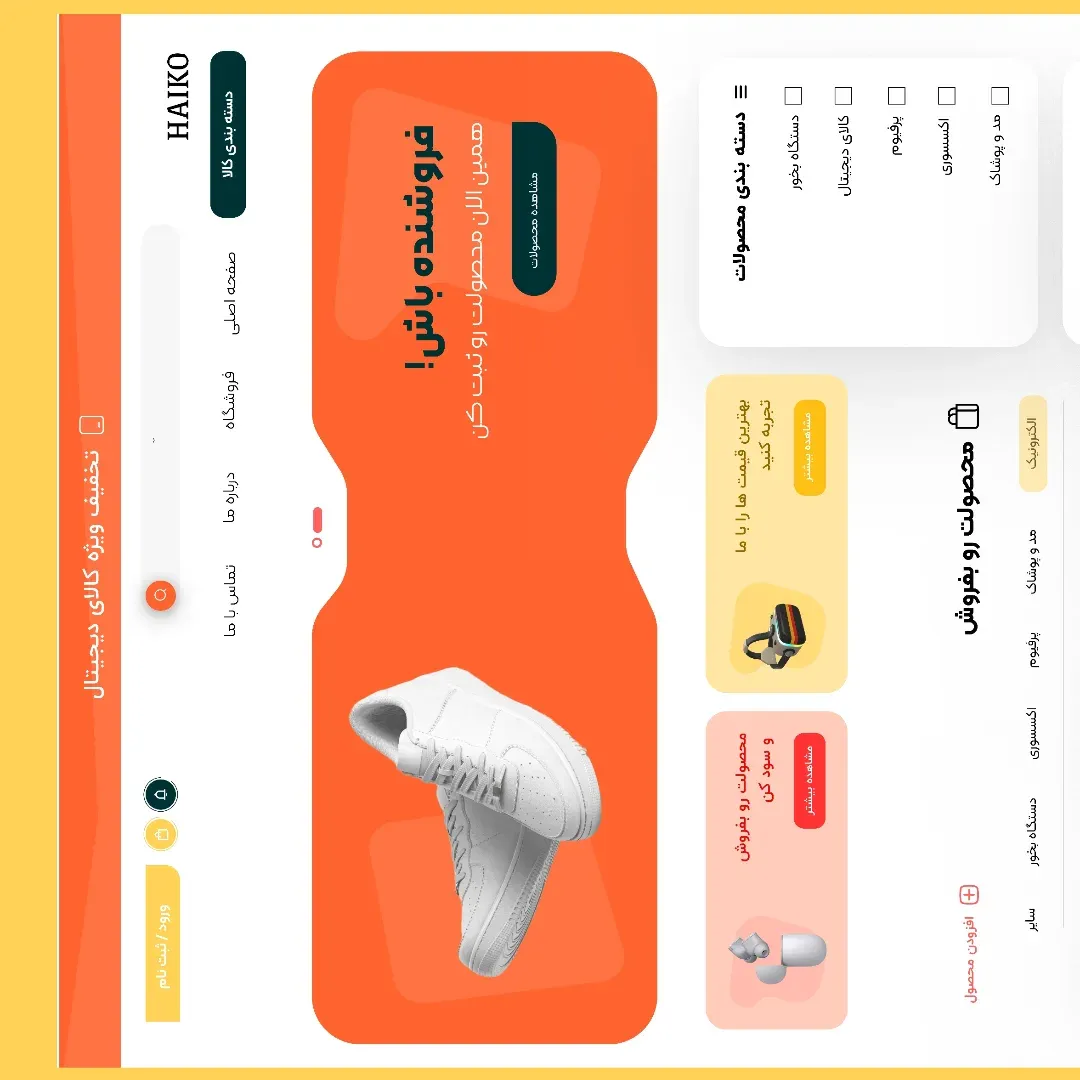 طراحی UI/UX مجموعه هایکو با هدف ایجاد تجربهای سریع، مدرن و کاربرپسند برای کاربران حوزه کالای دیجیتال انجام شده است. این مجموعه ارائهدهنده انواع محصولات دیجیتال بوده و ساختار رابط کاربری به گونهای طراحی شده که کاربران بتوانند بهراحتی محصولات مورد نظر خود را بررسی و انتخاب کنند.